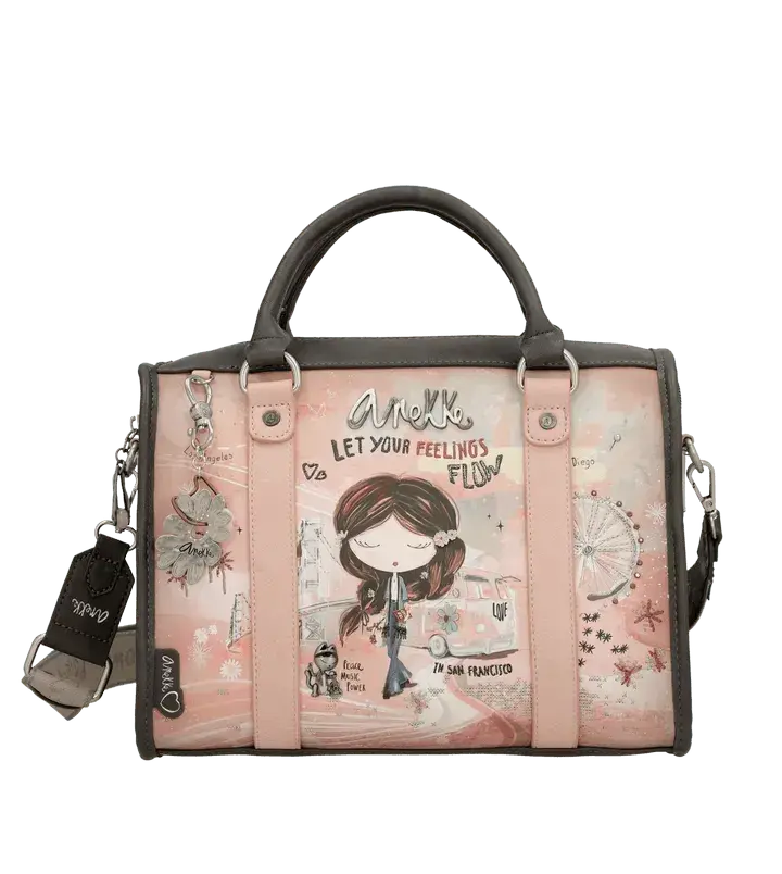Voyagez dans le temps avec le sac à main Anekke Peace & Love Pink ! Inspiré par l'esprit libre et joyeux des années 60, ce sac spacieux et élégant vous accompagnera dans toutes vos aventures avec style et fonctionnalité.
