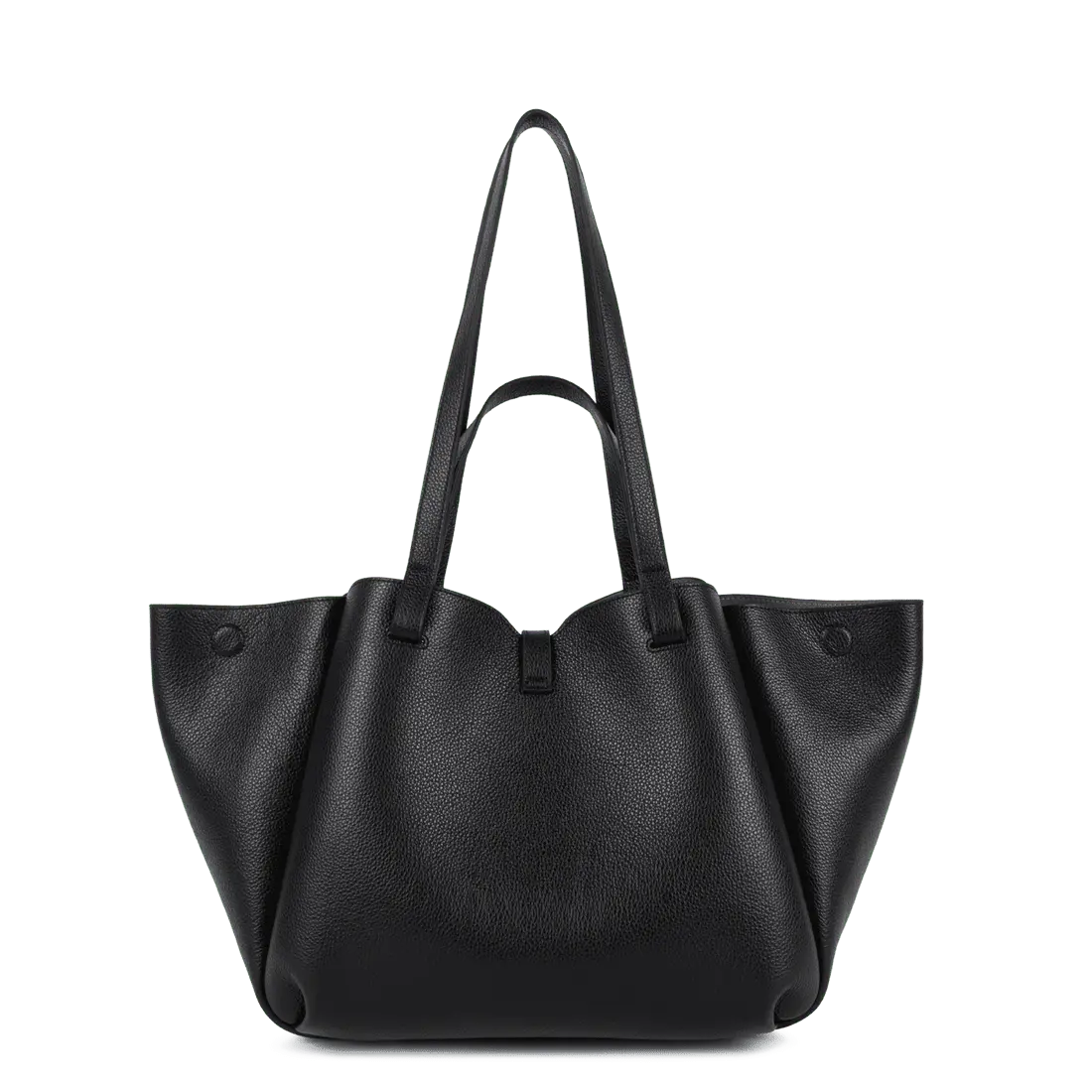 Grâce à son système de côtés repliables avec aimants discrets, le sac peut adopter deux formes : une version cabas ouverte et une version plus structurée. Il se porte confortablement à l’épaule et convient aussi bien au travail qu’aux déplacements quotidiens.