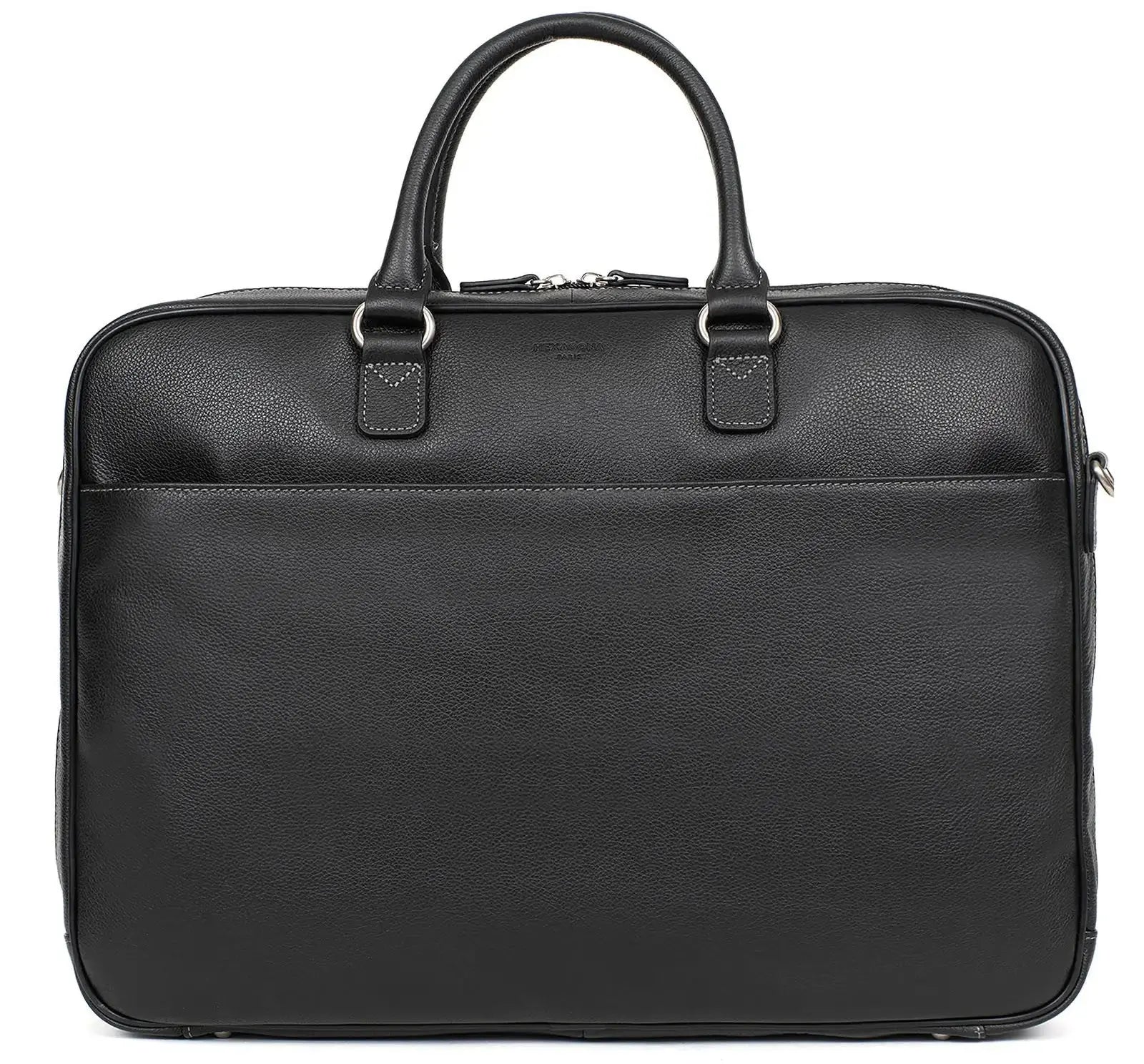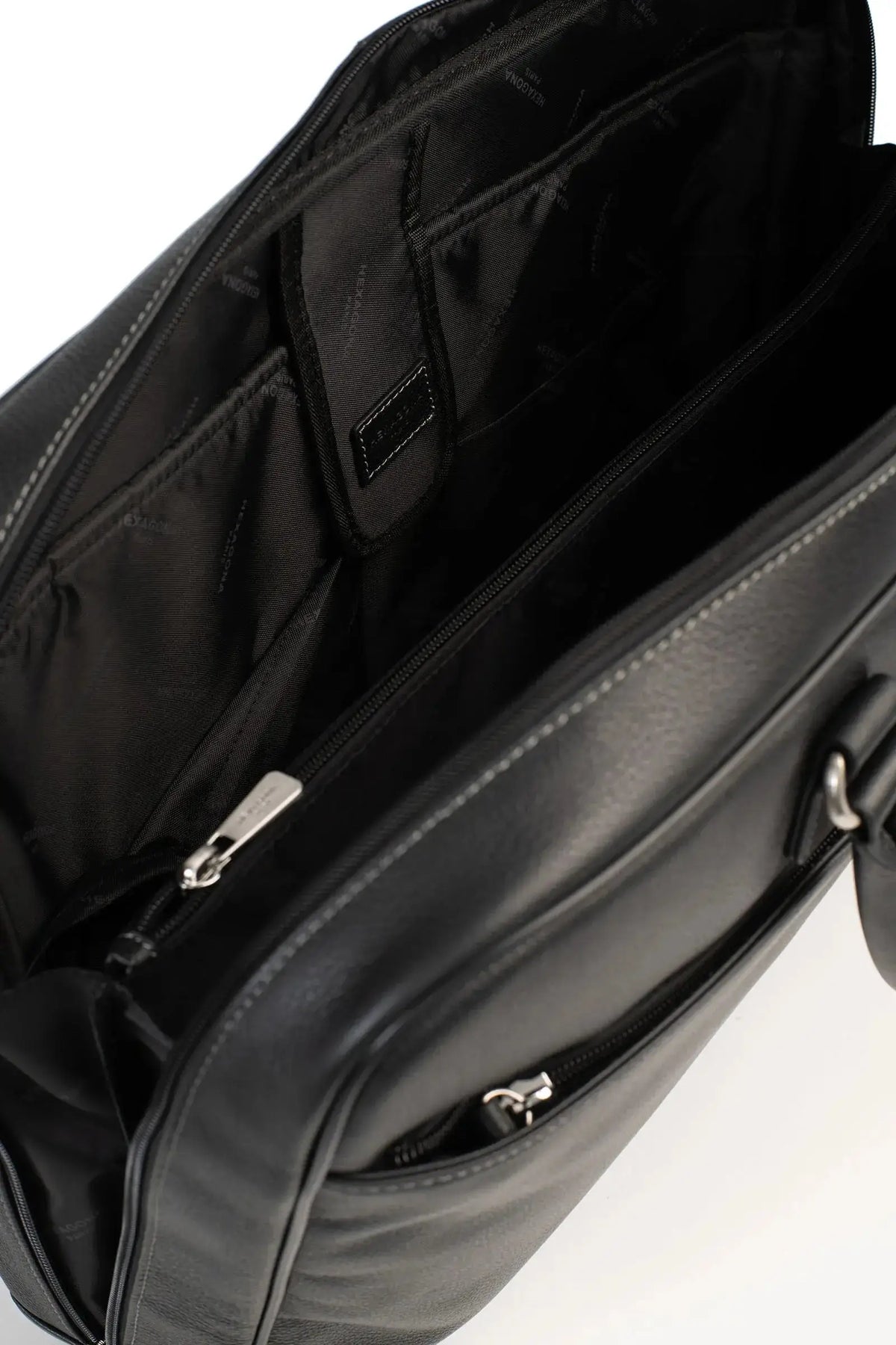 Idéal pour le quotidien ou les voyages d'affaires, ce porte-documents dispose d’un compartiment principal spacieux avec un espace rembourré pour ordinateur portable 17", une poche de séparation zippée, une poche plate zippée, ainsi que quatre poches plates pour organiser vos essentiels, dont un compartiment téléphone. À l’extérieur, il est équipé d’une poche avant zippée, d’une poche arrière zippée et d’un passage trolley pour une utilisation pratique.