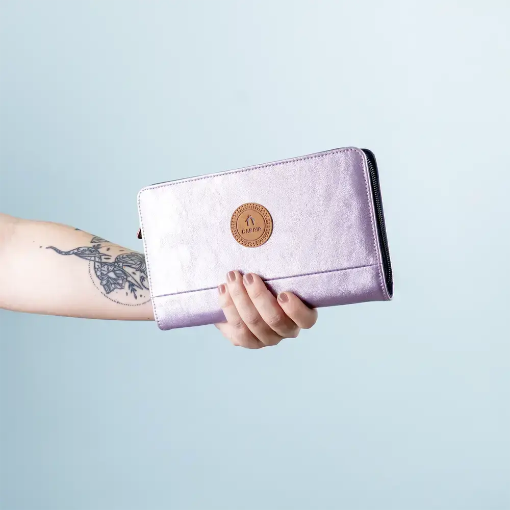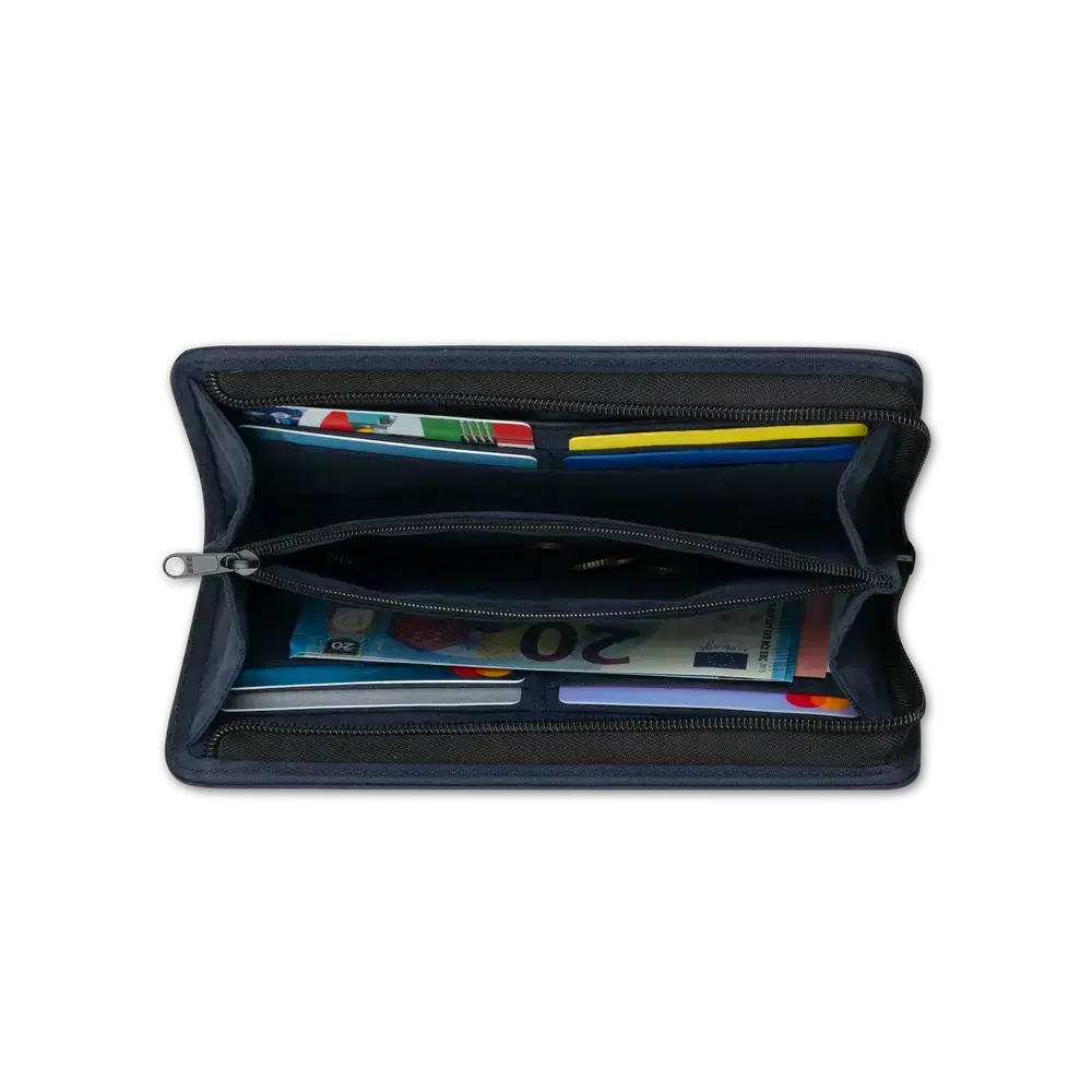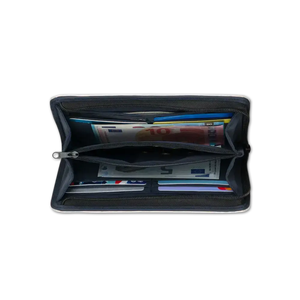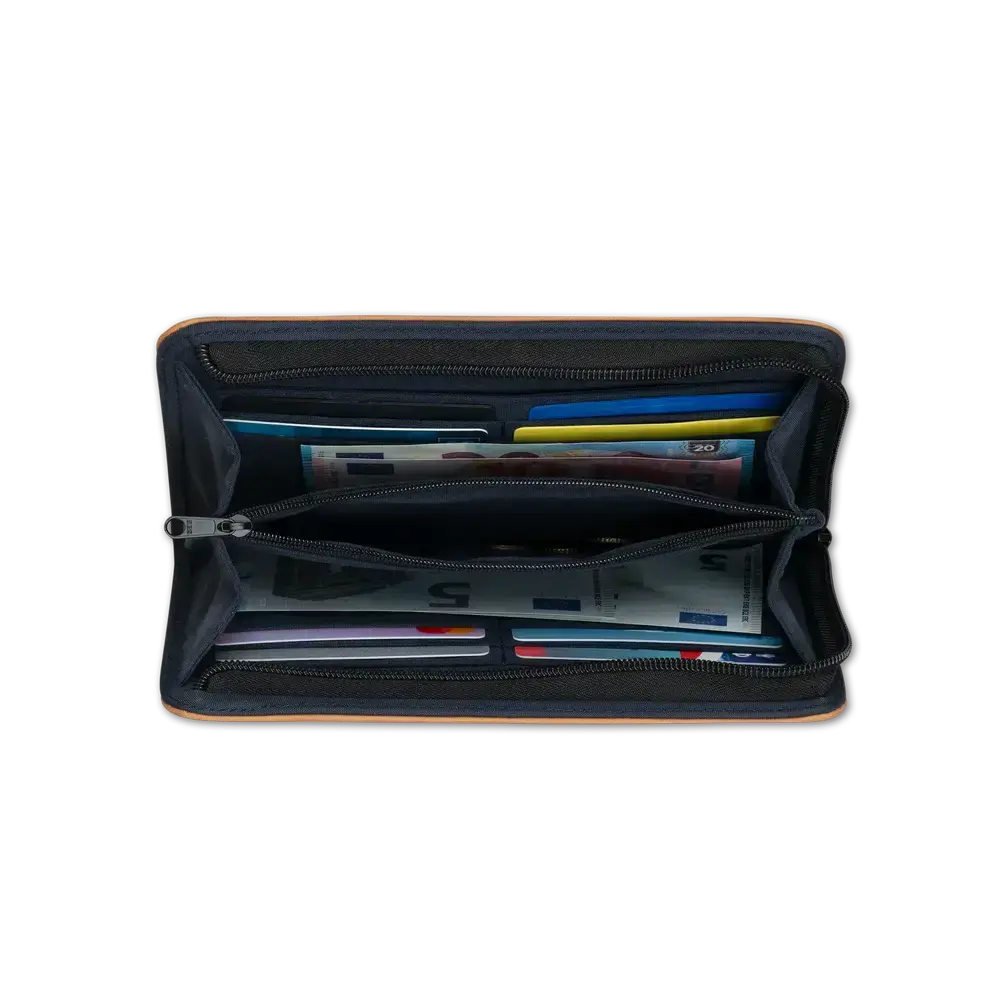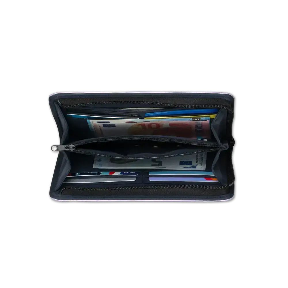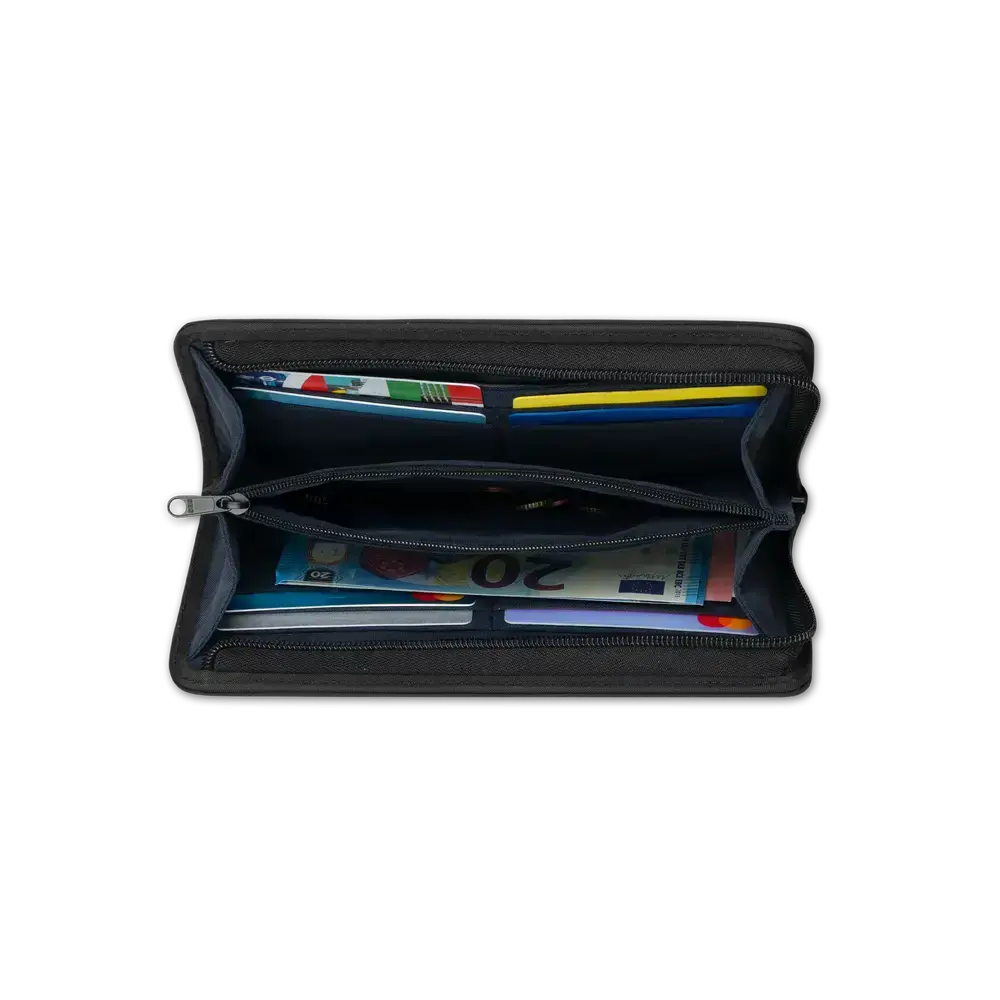 Le portefeuille Cabaïa Large offre une organisation intérieure complète pour vous simplifier la vie. Avec sa fermeture zippée intégrale et son ouverture à soufflet, il s’ouvre grand pour un accès facile à toutes vos affaires. Il dispose de :
