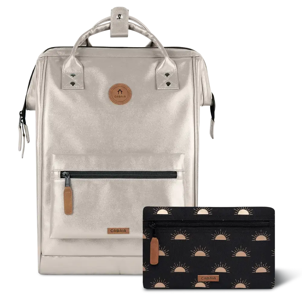 L'Adventurer Large Honolulu arbore une finition dorée sophistiquée qui ne passe pas inaperçue. Issu de l'univers Cabaia, ce sac à dos urbain 23L marie élégance et responsabilité environnementale pour sublimer vos déplacements quotidiens.
