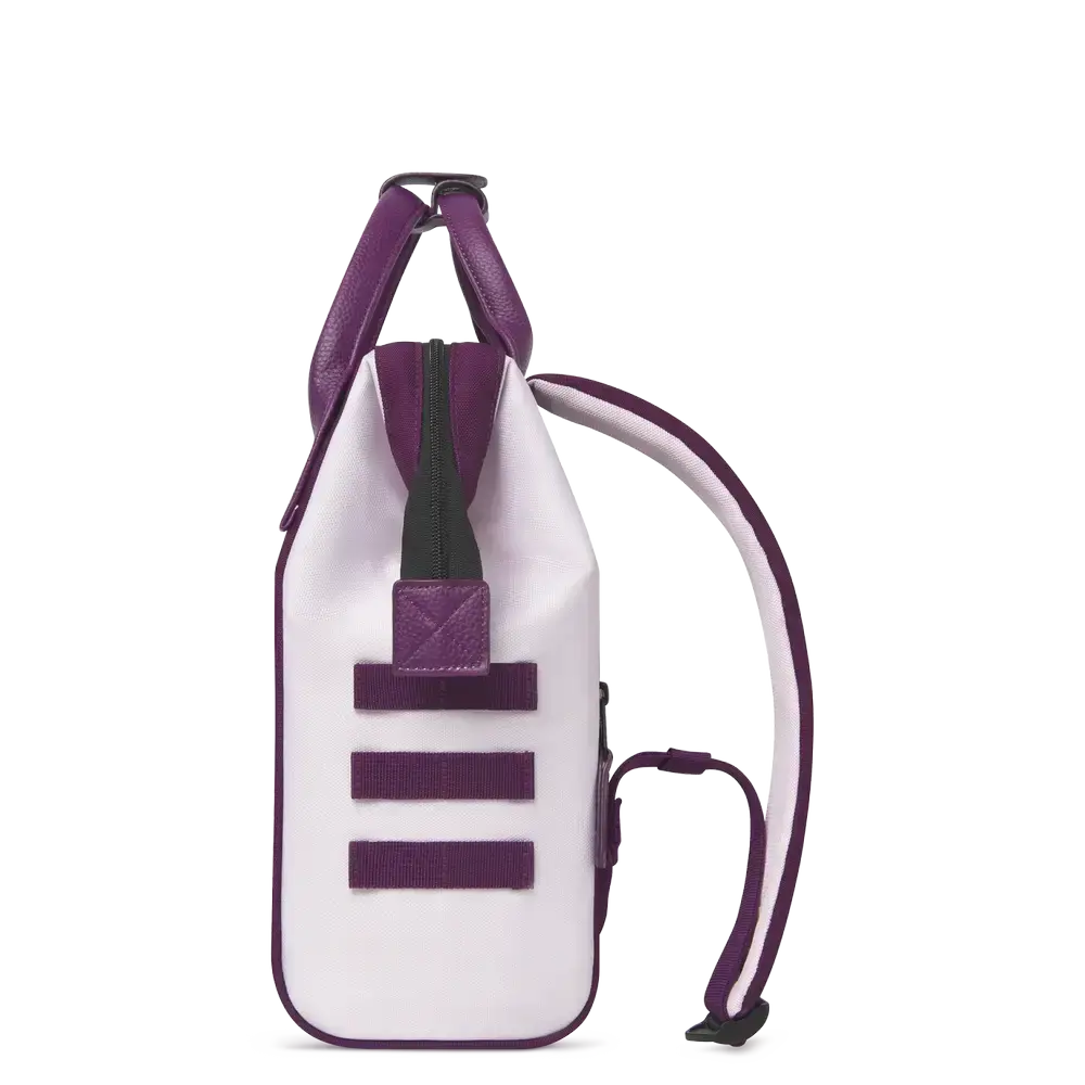 Ce sac à dos se distingue par sa couleur violette unique et ses deux pochettes interchangeables exclusives : "Villa Bellevue" unie et "Fort Henry" à motifs. Fabriqué en matériaux de qualité supérieure avec un tissu déperlant pour protéger vos affaires des intempéries, il vous accompagnera fidèlement dans toutes vos aventures.