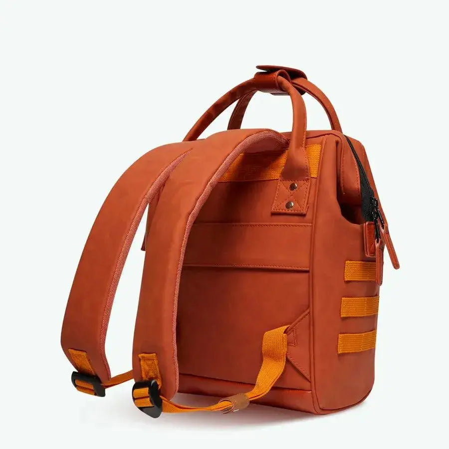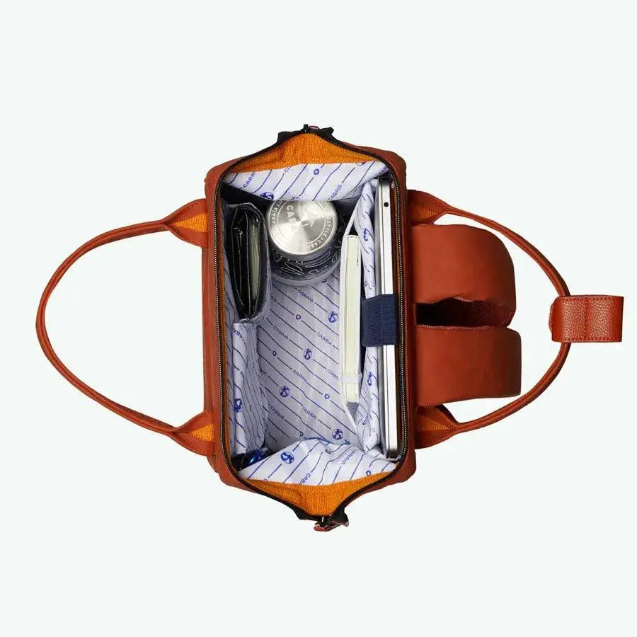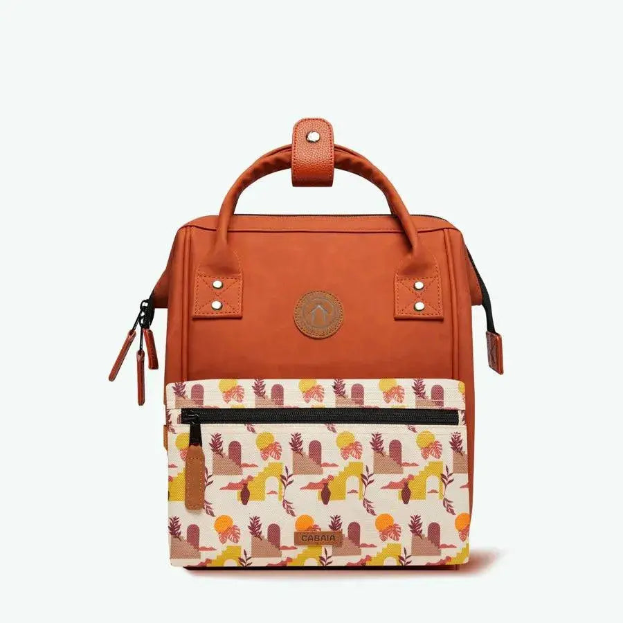 Le Mini Tanta Cabaia terracotta n'est pas un simple sac à dos, c'est votre passeport pour l'aventure quotidienne. Sa silhouette élégante et ses deux pochettes interchangeables (terracotta "Athribis" et orange à motifs "Mendes") vous permettent d'affirmer votre style unique en toute situation.
