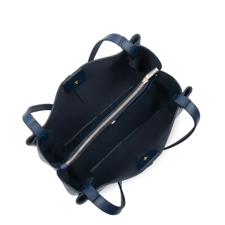 La doublure en polyester aspect microfibre apporte une touche douce et raffinée à l'intérieur du sac cabas. Cette doublure de qualité protège vos affaires tout en offrant une finition soignée et luxueuse, en harmonie avec le cuir grainé extérieur.