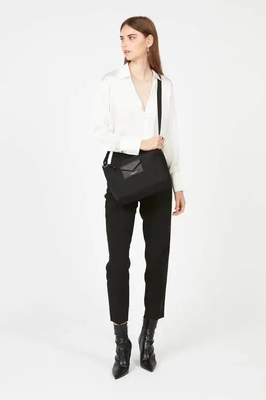 La bandoulière réglable de 73 à 116 cm permet de porter le sac aussi bien à l’épaule qu’en porté travers, offrant une grande liberté de mouvement.