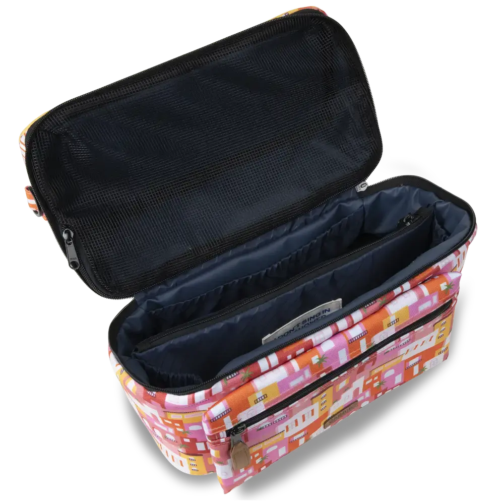 Le Vanity Cabaia "Rhodes" combine **design audacieux et praticité**, parfait pour celles et ceux qui veulent **du style et de l’organisation**. Son **motif vibrant rose, jaune et orange** apporte une touche de **bonne humeur et d’originalité** à votre routine.